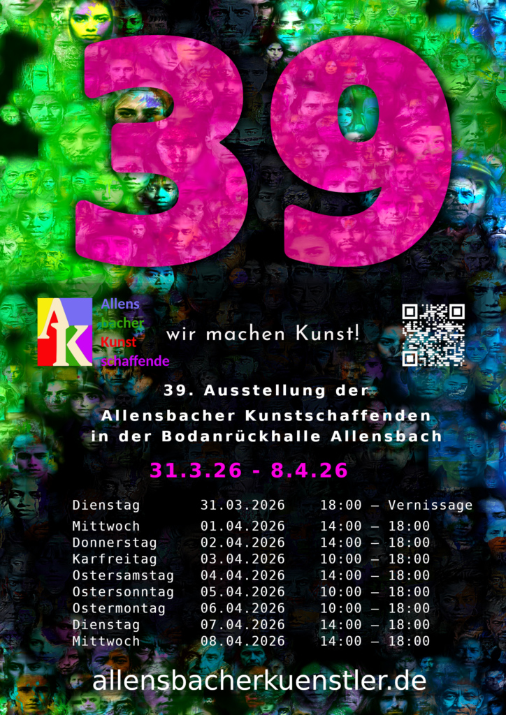 Wir sind eine Gruppe von derzeit etwa 45 Künstlern aus Allensbach am Bodensee. die seit 1985 gemeinsame Ausstellungen durchführt.